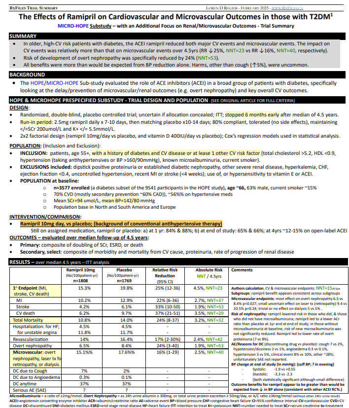 The Effects of Ramipril on Cardiovascular & Microvascular Outcomes in those with T2DM
